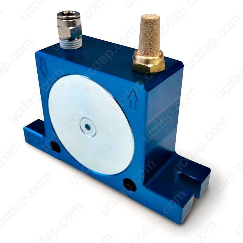 Пневматические шариковые вибраторы серии S доступны в восьми размерах с корпусом из алюминия синего цвета и крышкой из оцинкованной стали.